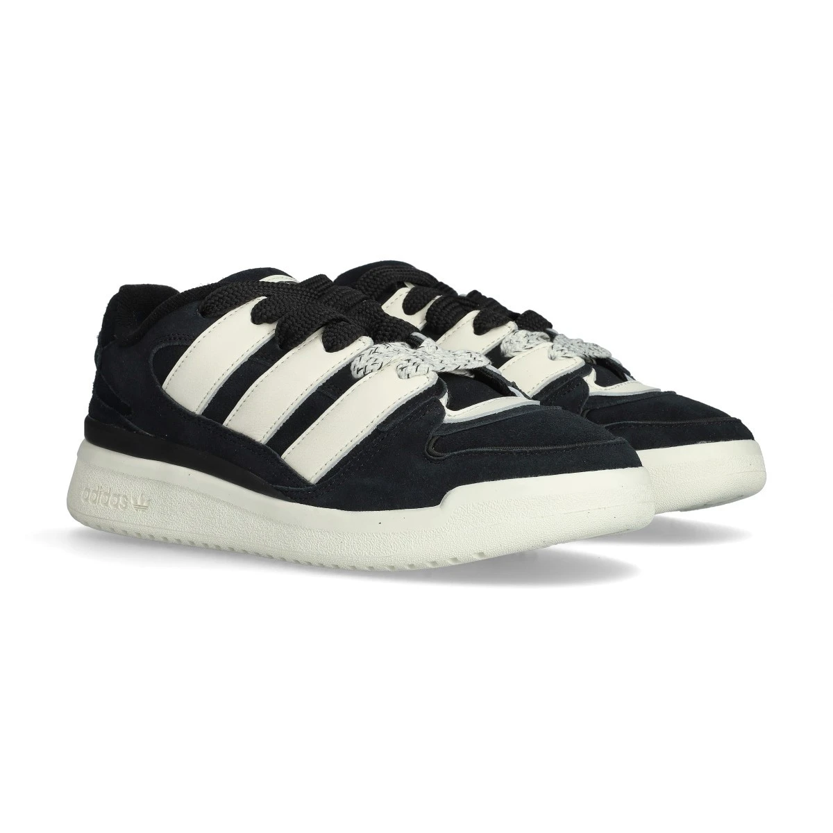 La chaussure de sport Forum2000 d'adidas rappelle la mode des années 2000 avec des proportions exagérées, des bandes 3 surdimensionnées et une languette rembourrée. Elle présente une tige en daim et des détails en cuir pour un look et une sensation haut de gamme. Les lacets épais et les blocs de couleurs apportent un style audacieux.