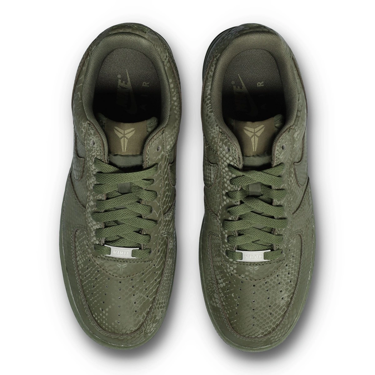 Ces éditions spéciales des Air Force 1 sont imprégnées de l'ADN Mamba, visible dans l'imprimé peau de serpent sur toute la chaussure, ajoutant une touche distinctive à un classique intemporel. Les numéros 8 et 24 brodés sur le talon rendent hommage aux numéros de maillot retirés de Kobe, tandis que les logos Sheath sur la languette et le talon extérieur ajoutent une touche exclusive. Ces Air Force 1 Kobe poursuivent l'héritage du joueur avec des étiquettes spéciales ‘Mamba Forever’ sur les lacets.