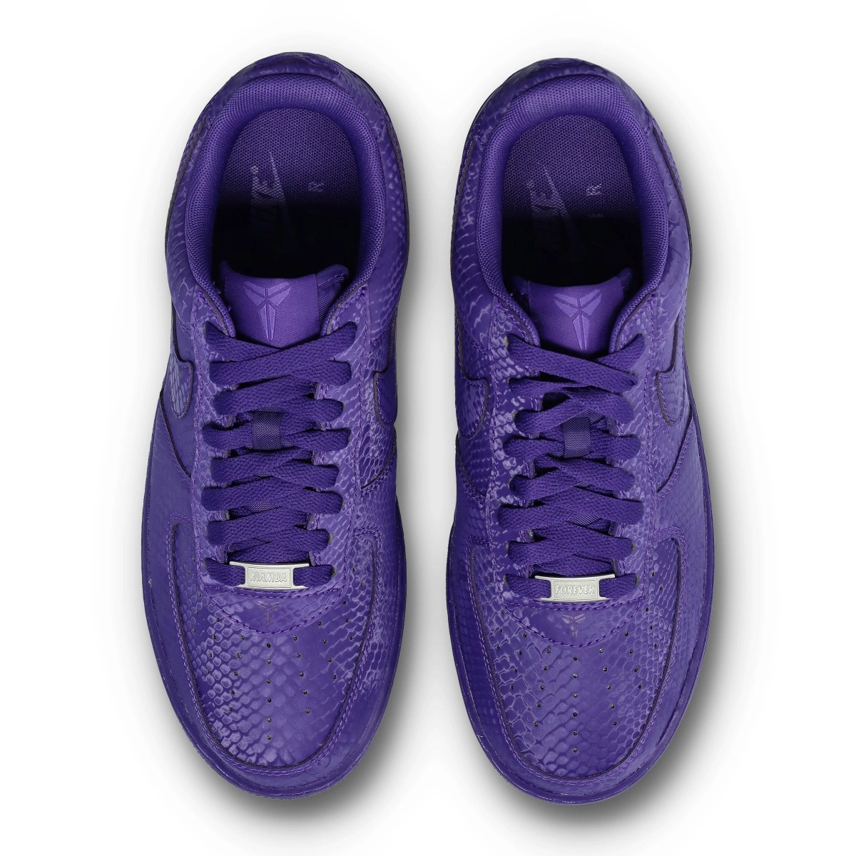 Ces éditions spéciales des Air Force 1 sont imprégnées de l'ADN Mamba, visible dans l'imprimé peau de serpent sur toute la chaussure, ajoutant une touche distinctive à un classique intemporel. Les numéros 8 et 24 brodés sur le talon rendent hommage aux numéros de maillot retirés de Kobe, tandis que les logos Sheath sur la languette et le talon extérieur ajoutent une touche exclusive. Ces Air Force 1 Kobe poursuivent l'héritage du joueur avec des étiquettes spéciales ‘Mamba Forever’ sur les lacets.