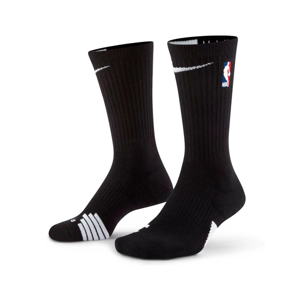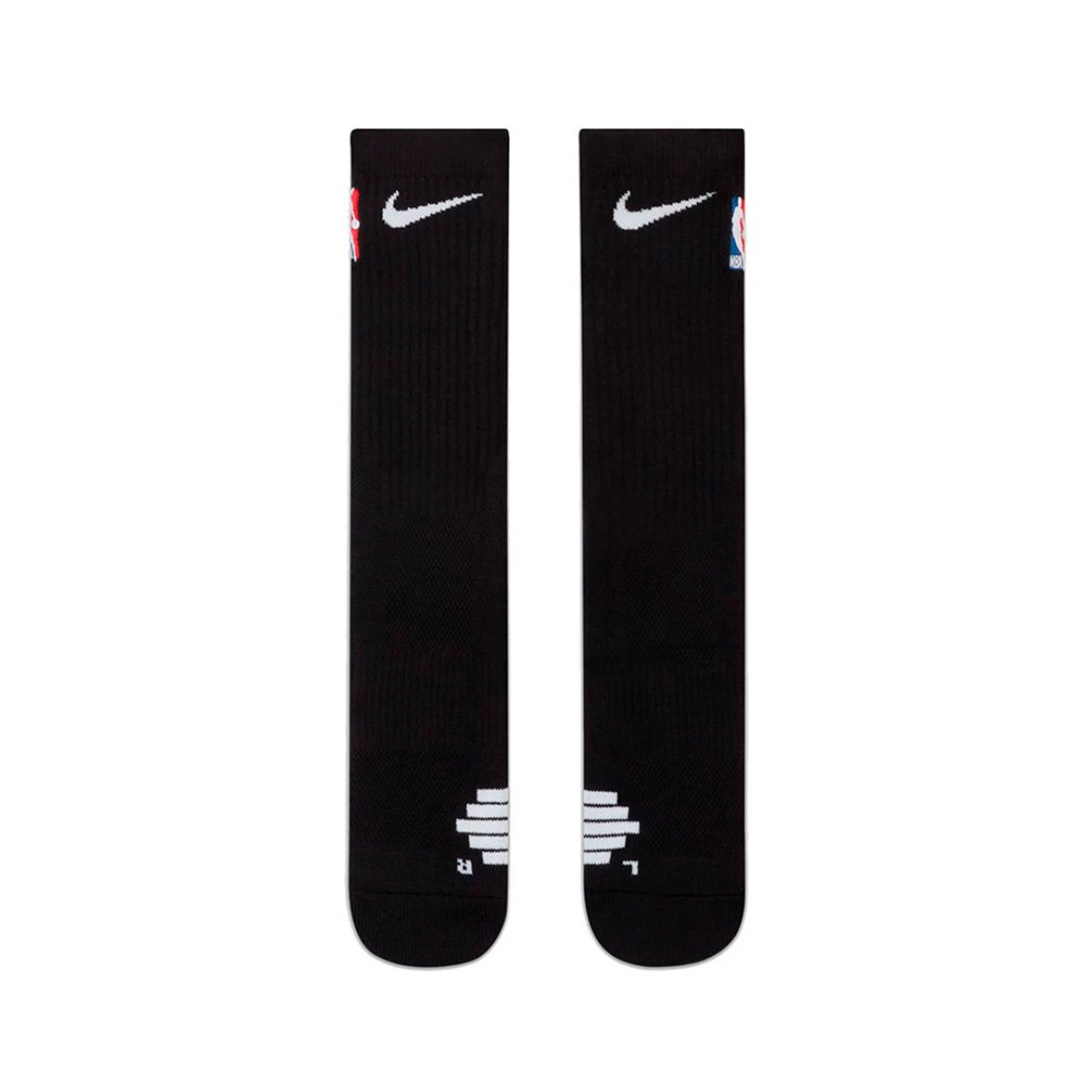 Les chaussettes de basket-ball Nike NBA Elite offrent un ajustement ferme avec une bande de pont et un amorti stratégique pour absorber les chocs lorsque vous courez sur le terrain.