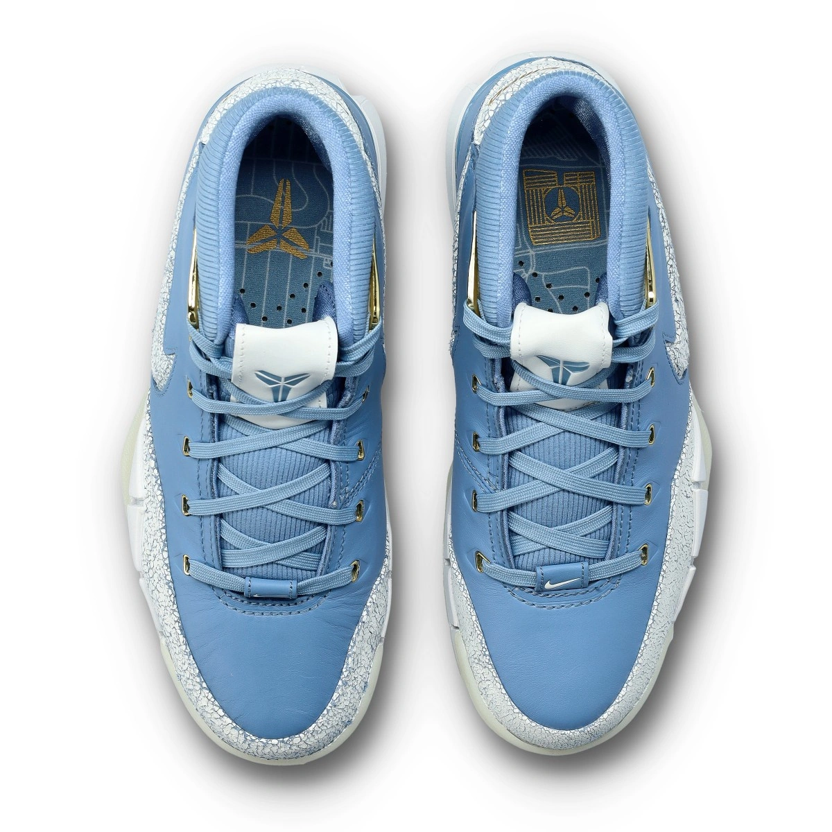 L'utilisation prédominante du Work Blue, complétée par le Summit White et des détails en Metallic Gold, évoque à la fois l'esthétique classique de la ville et la gloire des Lakers durant leur âge d'or.