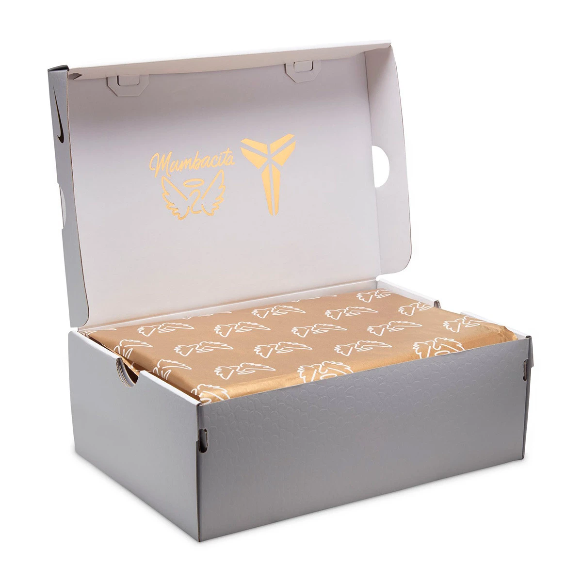 Ces chaussures rendent hommage à l'héritage transformateur de Gianna « Gigi » Bryant, qui a façonné l'avenir du sport féminin. Avec une tige en mesh noir et blanc et des accents métalliques dorés, elles portent le nom de Gigi sur le talon gauche et un cœur entourant son numéro de maillot sur le talon droit. Le logo Mambacita orne l'intérieur de la languette et chaque paire est accompagnée d'une étiquette à suspendre en forme de cœur Mambacita doré.