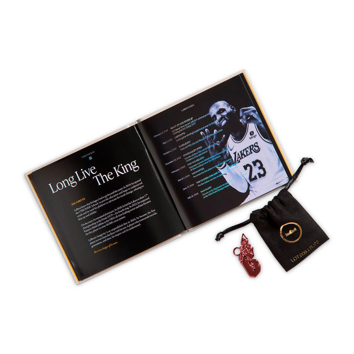 En ce qui concerne le design, la teinte rose frappante prédominante fait un clin d'œil à la chemise que LeBron portait lors de l'annonce, tandis que les détails dorés symbolisent les championnats remportés par la suite. De plus, les graphiques de couronnes divisées représentent le "Roi" dans un moment de doute avant de prendre une décision qui allait changer sa trajectoire et l'histoire récente de la NBA.