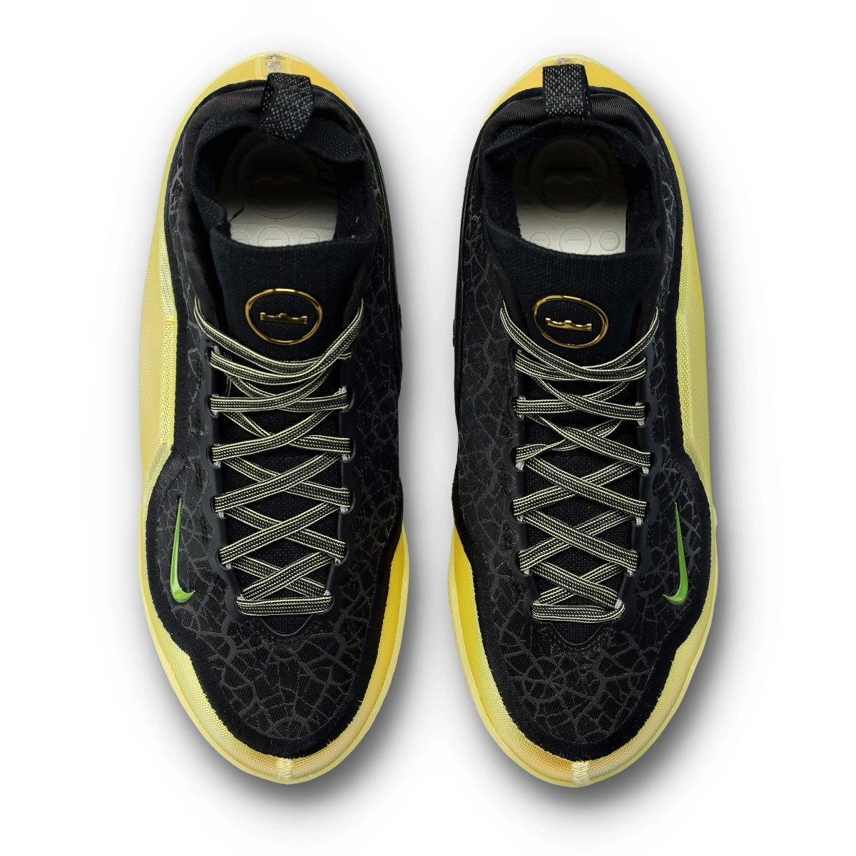 Sa base sombre, associée à des touches de jaune et de vert, évoque visuellement ce rival historique, tandis que les détails dorés renforcent l'idée de conquête, de grandeur et de réponse sur le terrain. Il s'agit d'un modèle pensé pour les joueurs qui n'ont pas besoin d'en dire plus : leur jeu parle pour eux. Une LeBron à l'âme compétitive, à l'esthétique puissante et à ce côté provocateur qui transforme la pression en motivation.