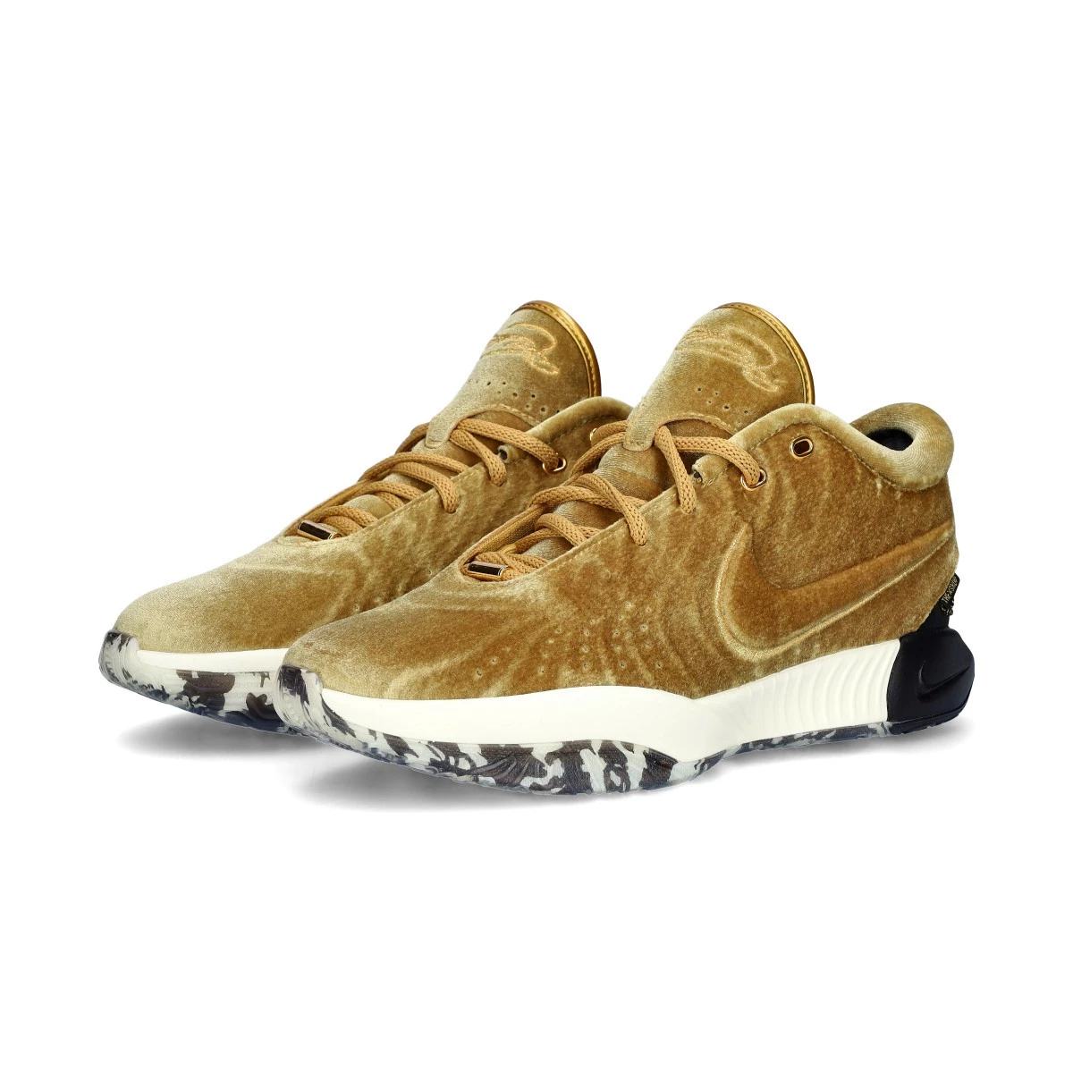 Conçue en collaboration avec "The Shop", le podcast de LeBron James et Maverick Carter sur le thème du salon de coiffure, cette édition spéciale de la LeBron XXI a été dévoilée lors du premier tour des playoffs opposant Los Angeles Lakers aux Nuggets de Denver. Dotées d'une tige en velours, elles dégagent un style et un luxe dignes du King.
