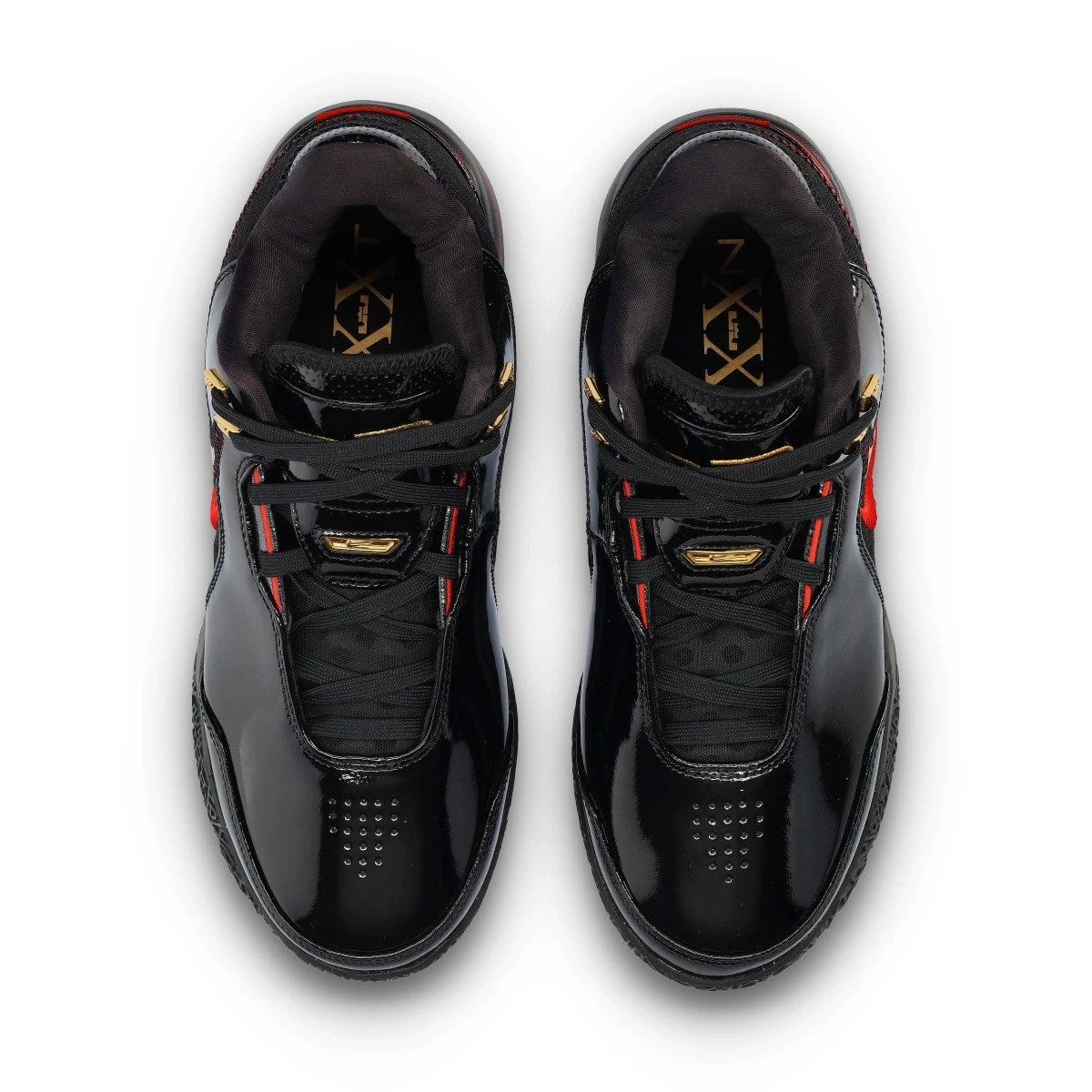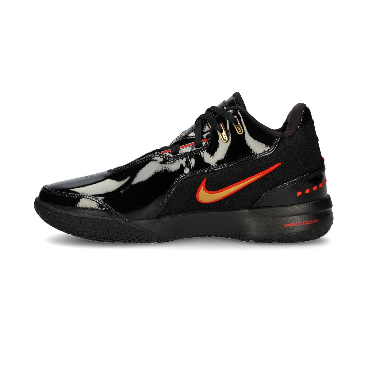 Ce modèle présente une tige en cuir verni noir, avec un design qui respire l'élégance et la durabilité. Les détails en or métallique reflètent l'esprit de victoire et l'excellence de LeBron James, ainsi que toutes les occasions où il a connu le succès au cours de sa carrière sportive.