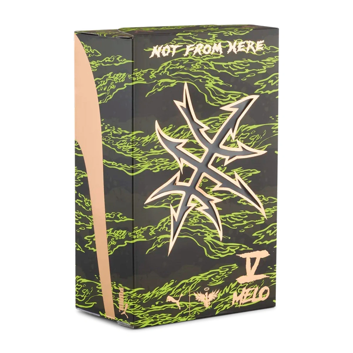 La tige est fabriquée avec un tissu en maille technique. Au talon, elle présente un relief détaillé de fil barbelé moulé, inspiré des tatouages de Melo.