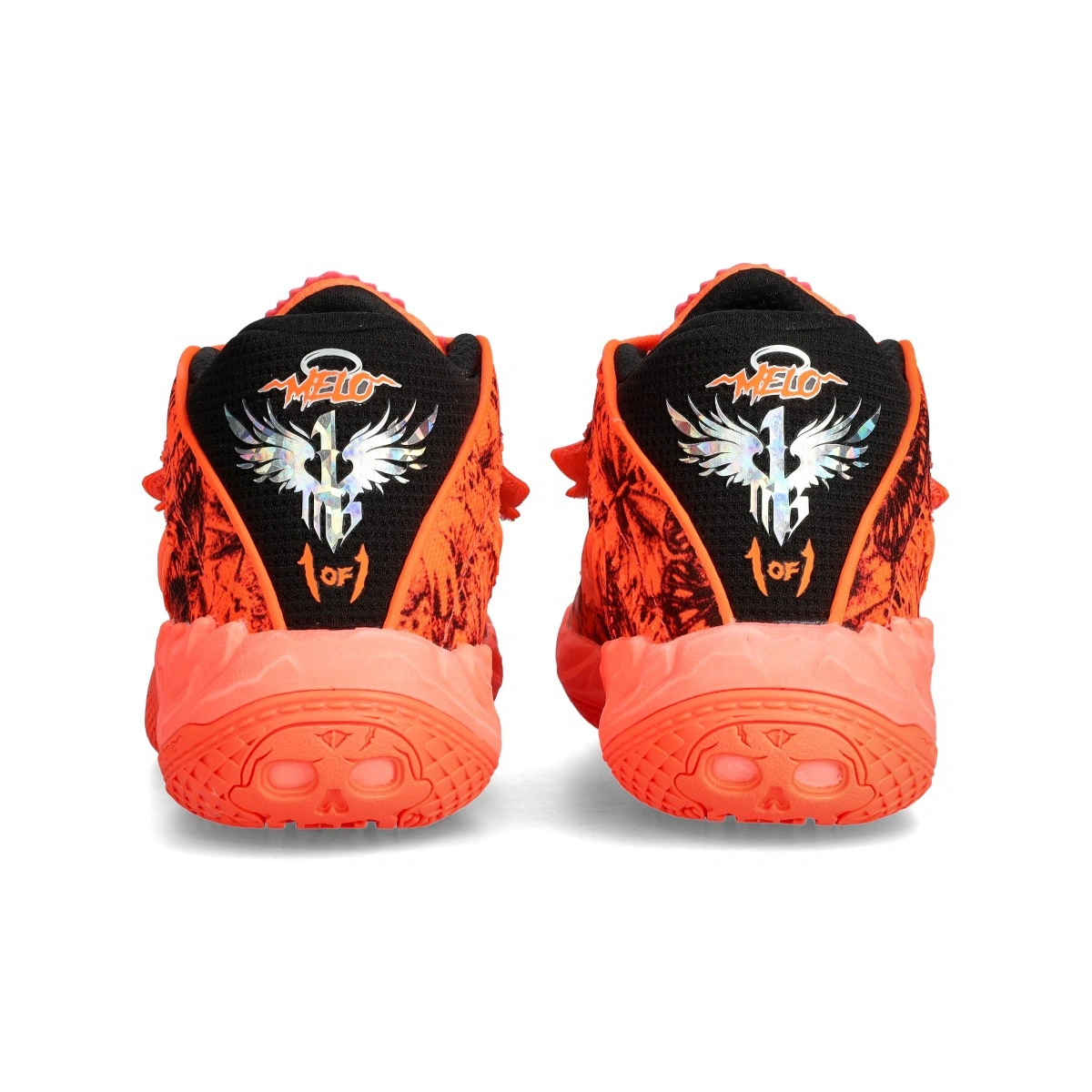 La semelle extérieure intègre des détails comme un crâne et le numéro '1', incorporant des éléments visuels liés au joueur.