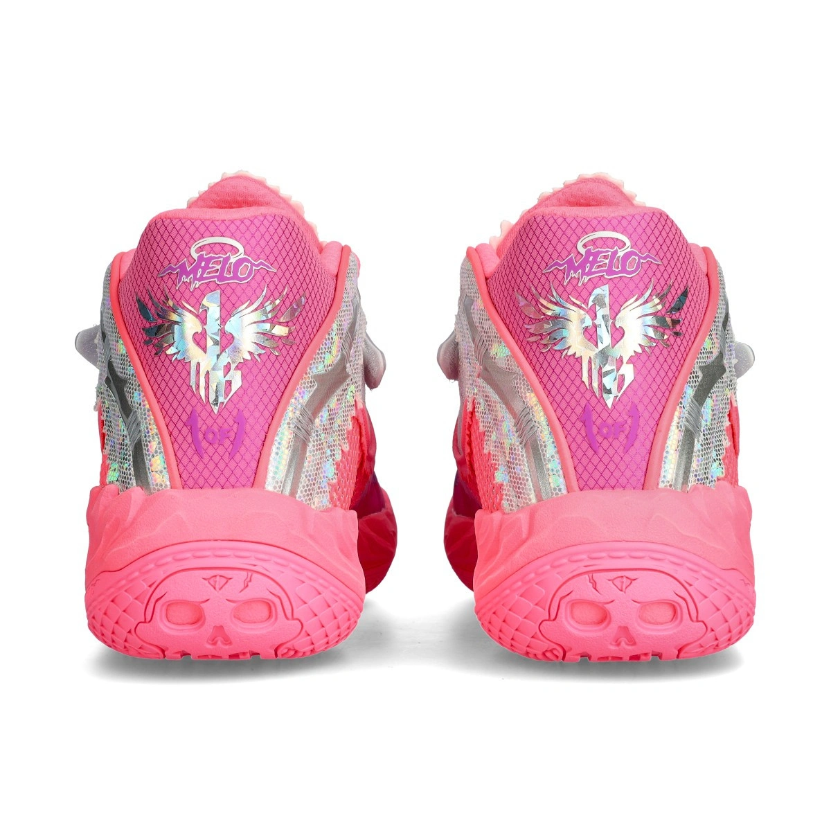 La semelle intègre des détails tels qu'un crâne et le chiffre « 1 », intégrant des éléments visuels liés au joueur.