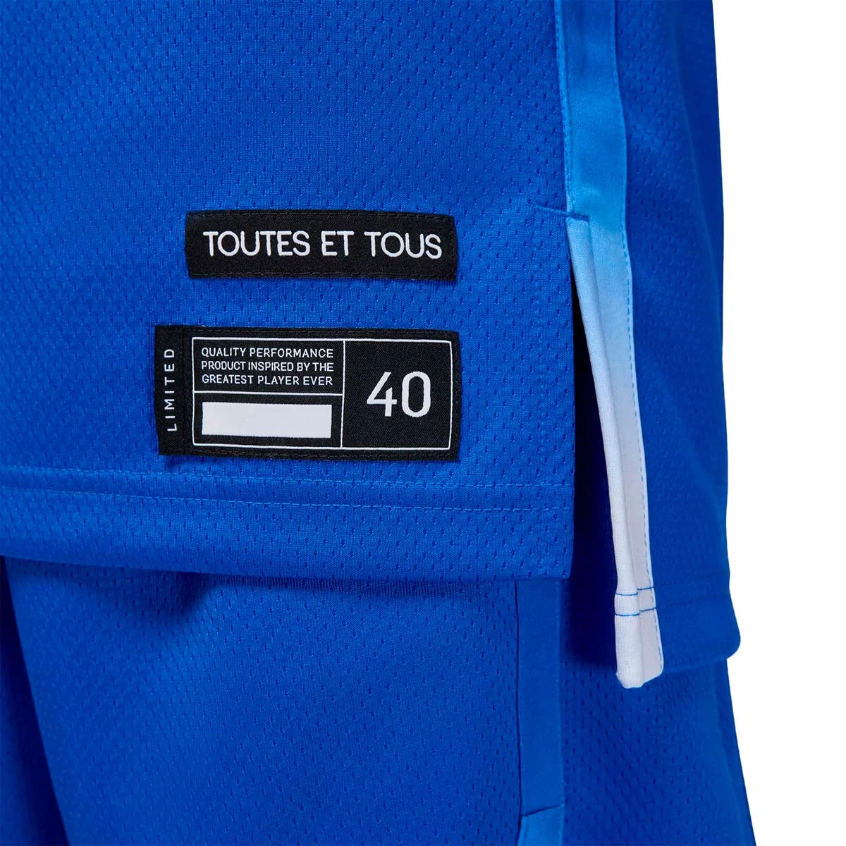 • Étiquette de l'équipe tissée sur la hanche gauche.