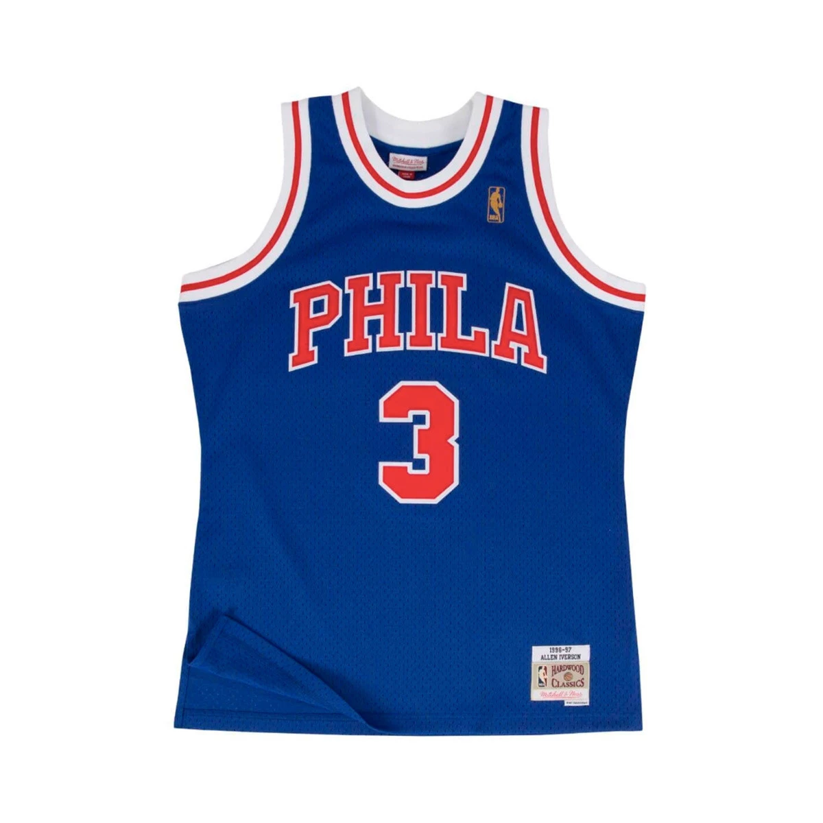 Maillot d'Allen Iverson lors de sa première saison avec les Sixers, 1996-1997. Qui ne se souvient pas du célèbre crossover avec Michael Jordan ? "The Answer" est l'un des joueurs les plus talentueux et les plus spéciaux de l'histoire de la NBA. Rendez hommage au légendaire 3 avec son maillot Hardwood Classics de Mitchell & Ness.