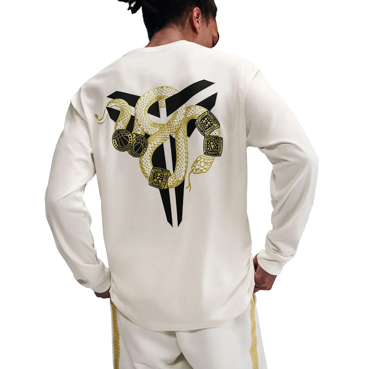 Ce T-shirt à manches longues spacieux célèbre l'année du serpent et la détermination qui a aidé Kobe à atteindre le but ultime du basket-ball à cinq reprises avec ses 5 championnats NBA.
