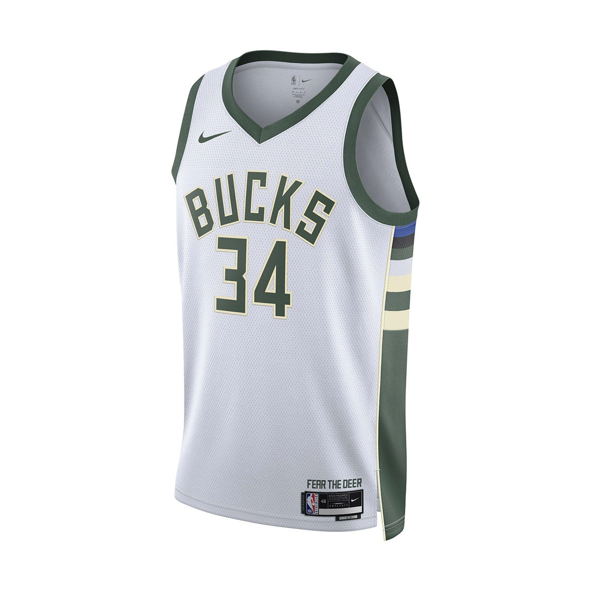 Le maillot Association Edition, réalisé sur fond blanc, est un fil conducteur qui unit toutes les équipes de la NBA. Ce maillot des Milwaukee Bucks Giannis Antetokounmpo s'inspire de ce que les pros portent sur le terrain, des couleurs et imprimés de l'équipe à la maille légère qui évacue la transpiration. Respire et reste au frais sur et en dehors du terrain lorsque tu encourages ton équipe préférée et que tu pratiques le sport que tu aimes.