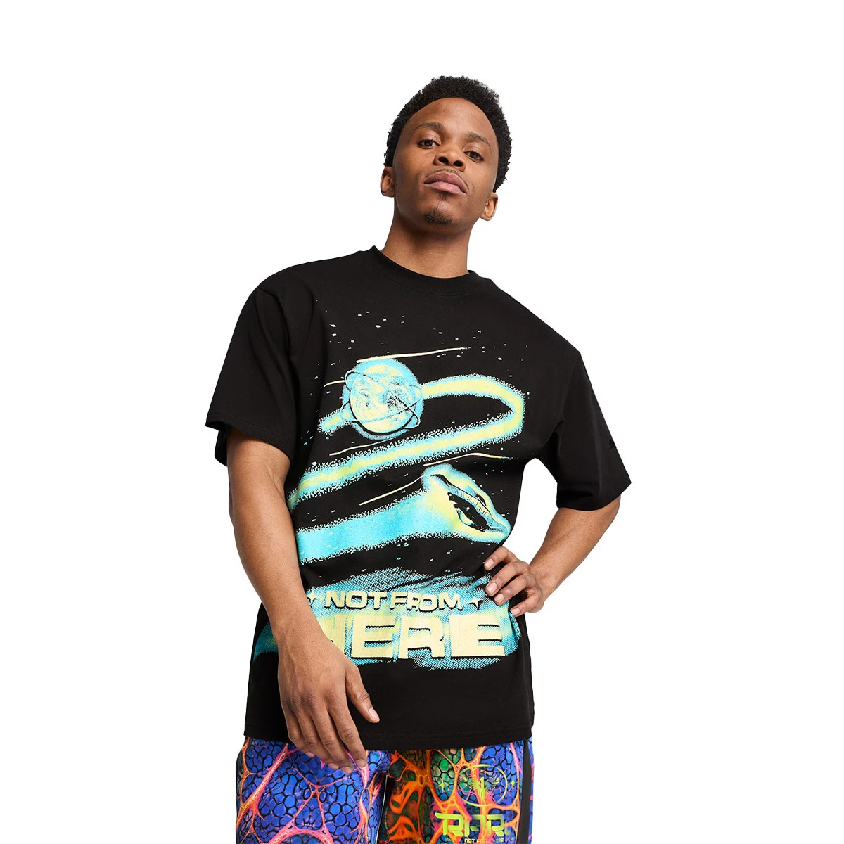 LaMelo Ball et PUMA ne cessent de nous surprendre. La nouvelle collection « Alien Skins » ne vient pas de cette planète. D'inspiration extraterrestre, comme s'il s'agissait de la peau d'un extraterrestre, ce T-shirt Melo Alien Skins fusionne la passion du basket-ball avec le monde interplanétaire de Melo.