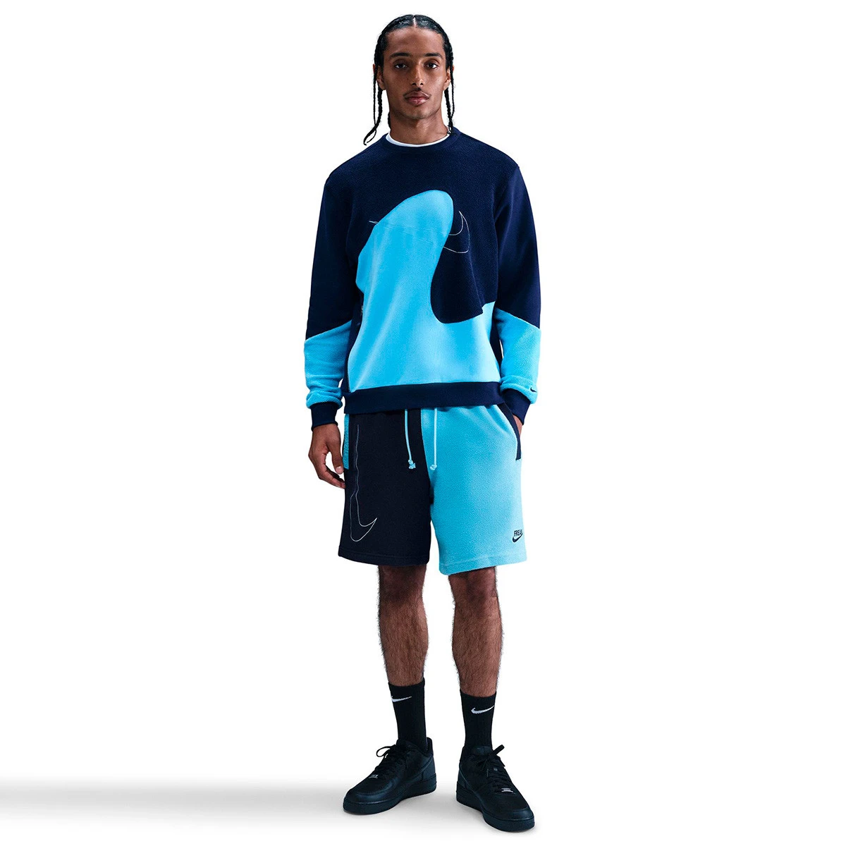 Mi-Giannis, mi-Freak. Accepte ta dualité avec ce short décontracté au look bicolore. Ce vêtement est conçu en tissu French terry à bouclette douce et respirante, avec une texture différente de chaque côté.