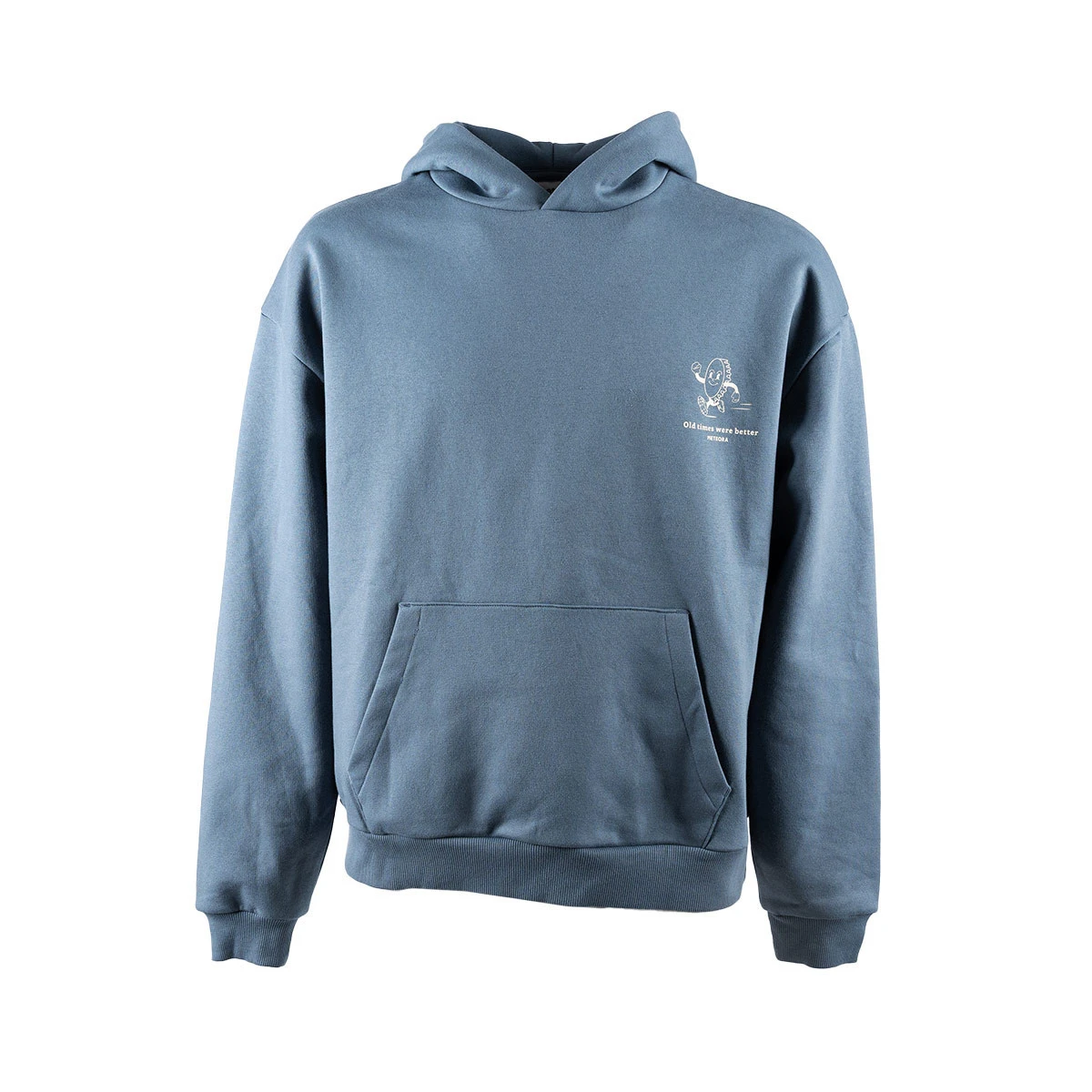 Sweat-shirt oversize avec capuche et manches longues. Poche kangourou sur le devant. Impression sur le devant. 100% coton 240 gr avec intérieur matelassé. Finition côtelée.