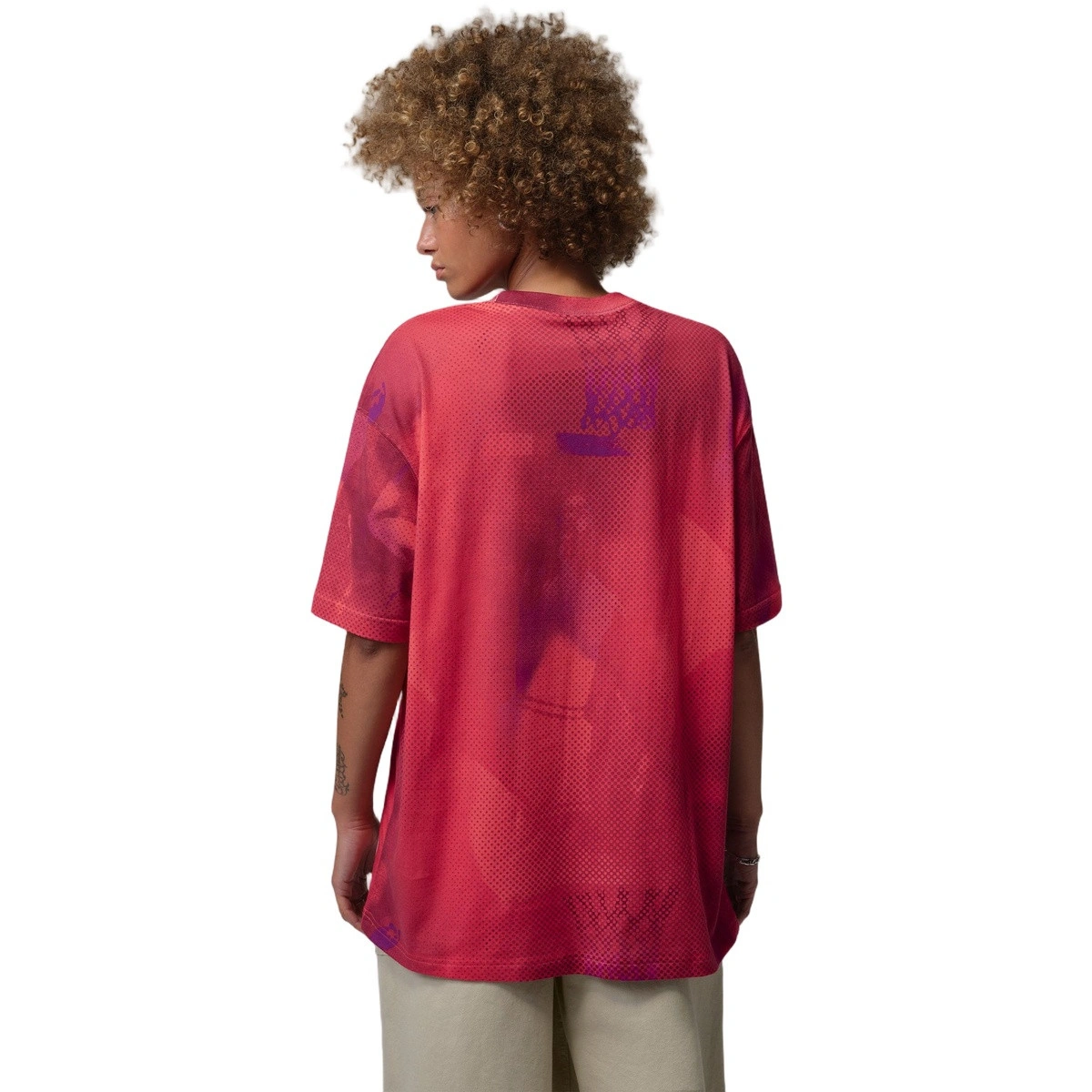 Le t-shirt Flight Oversize Gfx Aop pour femme dans la couleur vibrante Bright Crimson-Black de Jordan est une pièce indispensable pour toute amatrice de style urbain souhaitant afficher sa passion pour l'héritage légendaire de la marque au quotidien. Ce modèle présente une coupe oversize ultra confortable, idéale pour ces journées où vous souhaitez vous sentir détendue tout en restant à la mode.