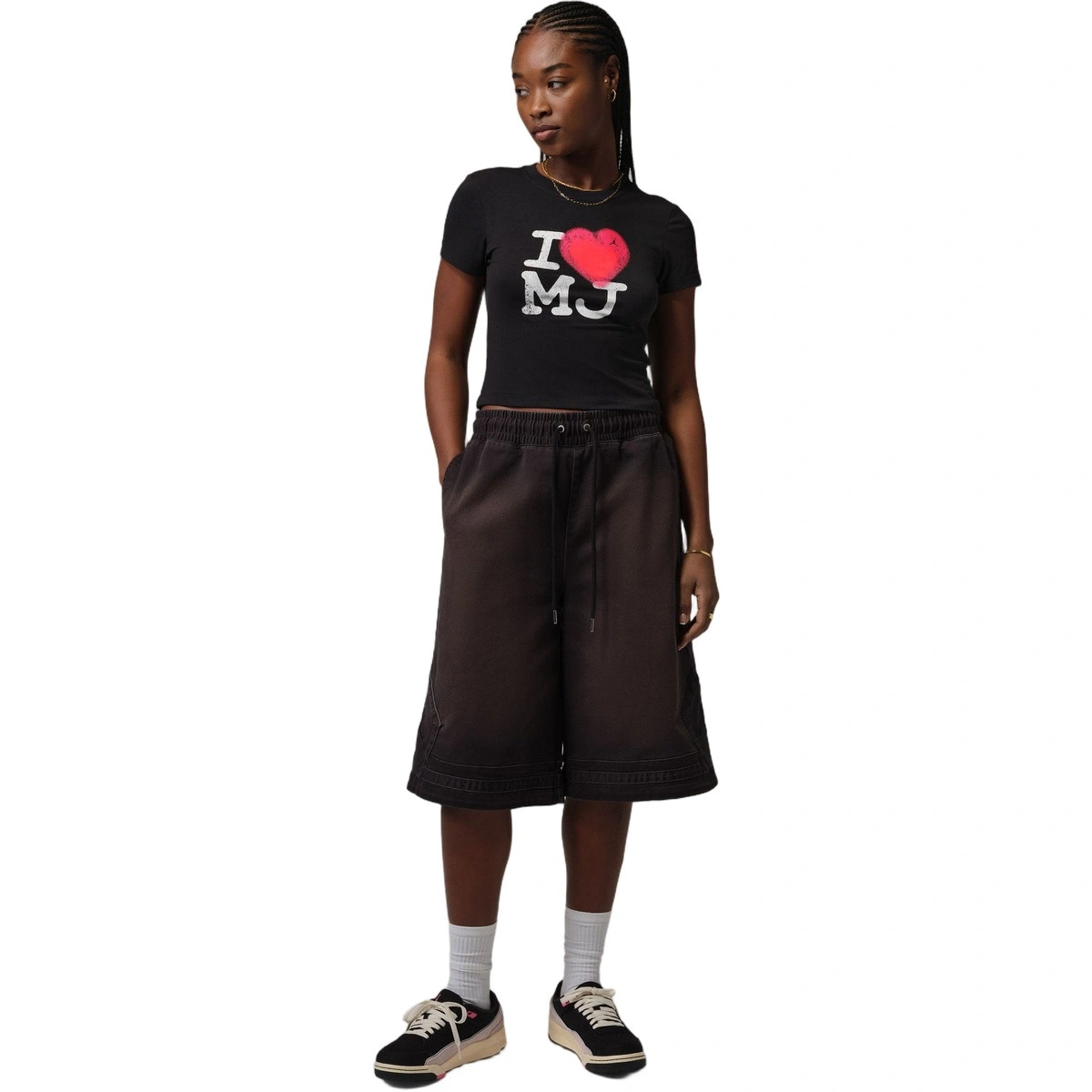 En hommage aux équipes les plus légendaires du basket-ball vues à travers l'héritage de Jordan, ce t-shirt pour femme présente le numéro 23 emblématique brodé au centre du devant. Sa coupe légèrement courte et son tissu extensible offrent un ajustement près du corps et confortable.