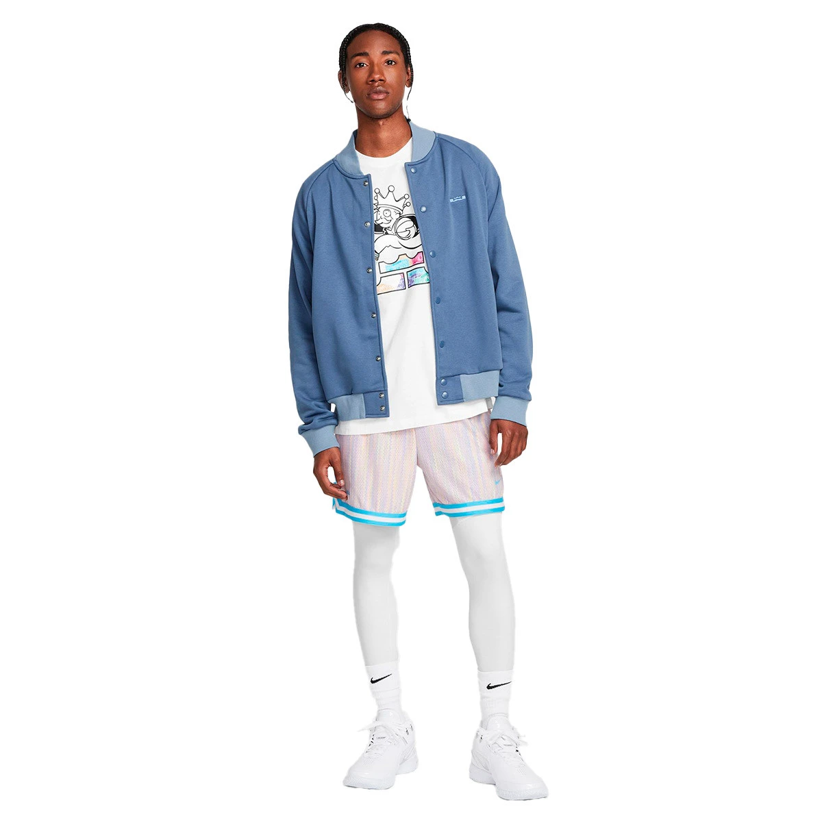 • Poche latérale fonctionnelle avec fermeture éclair : permet un rangement sécurisé, tandis que les boutons-pression émaillés au centre apportent un look emblématique inspiré des vestes bomber et du style unique de LeBron.